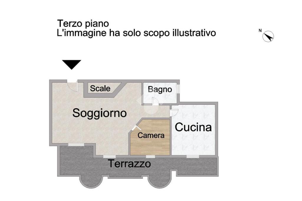 Attraverso un comodo disimpegno raggiungiamo la zona notte, composta da cucina abitabile, camera da letto e bagno finestrato.