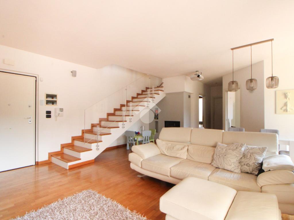 L'appartamento apre su un luminoso soggiorno con accesso al terrazzo.