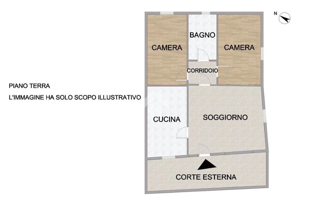 La soluzione si compone di soggiorno e cucina abitabile con caminetto, ambienti accoglienti e facilmente valorizzabili con un intervento di ristrutturazione.