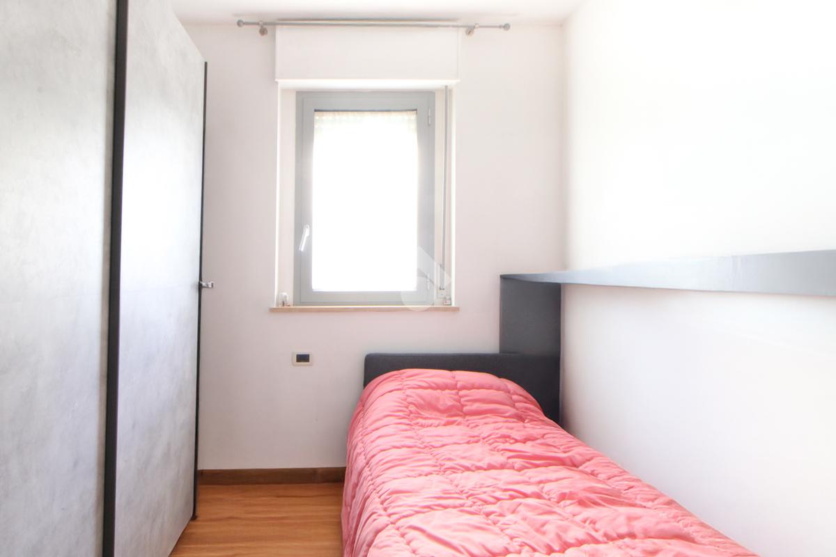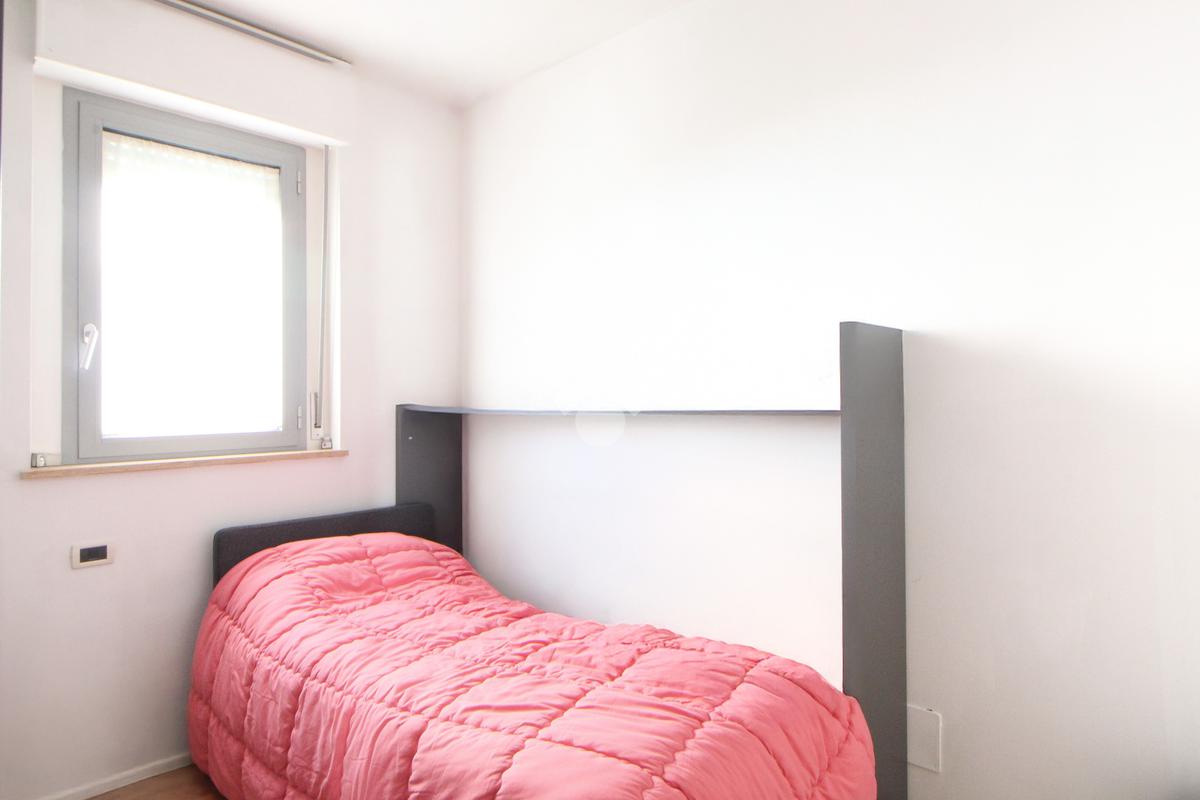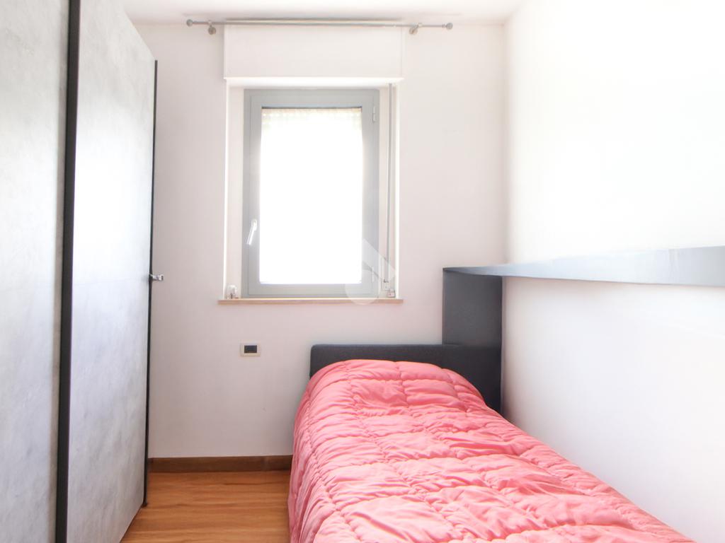 Un comodo disimpegno conduce alla zona notte, composta da una camera matrimoniale, cameretta, ripostiglio, completa la zona notte un bagno finestrato con box doccia.